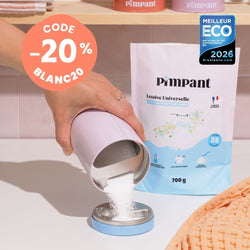 Notre petit secret : Pour booster l’efficacité du savon détachant, vous pouvez utiliser notre Poudre à Linge dès 40°.